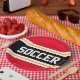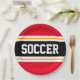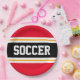 Este esportivo, design atlético, apresenta dentro de texto ousado SOCCER, uma faixa preta de centro largo com pinstripes brancas e amarelas contra listras externas brilhantes. O texto pode ser personalizado.