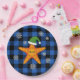 Prato De Papel Estaleiro do Natal Kawaii no padrão azul de búfalo