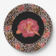Prato De Papel Estampa de animal leopardo e flores rosa em preto