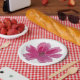 Prato De Papel Estampa de Flor Rosa Pintada à Mão