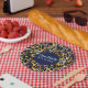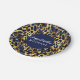 Pratos de papel inspirados no safari com estampas de pelos de animais em dourado e azul marinho.