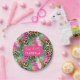 Impressões de pelos de animais do safari - pratos de papel exóticos verde rosa e dourado