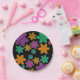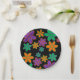 Flores do estilo Groovy 1970 em fundo preto. Estas placas de papel são perfeitas para a sua festa temática de 1970!