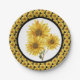 Crie uma mesa incrível com este prato de papel de girassol amarelo-dourado. Este prato apresenta um buquê de girassol ilustrado com aquarela em um centro branco cremoso, e a borda deste prato apresenta um padrão de girassol com fundo preto. O design deste prato é perfeito para várias ocasiões. Veja os produtos de cozinha e jantar coordenados na minha coleção Country Style Cards and Gifts.