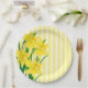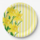 Esta placa de papel da temporada de primavera apresenta lindas flores amarelas daffodils em um fundo alegre, amarelo e branco listrado. Use este prato de festas para suas reuniões de primavera e festas de Páscoa ou Dia de as mães.