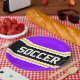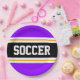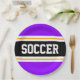 Este esportivo, design atlético, apresenta dentro de texto ousado SOCCER, uma faixa preta de centro largo com pinstripes brancas e amarelas contra listras externas roxas brilhantes. O texto pode ser personalizado.