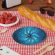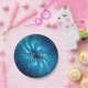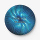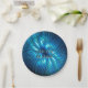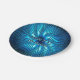Uma imagem fractal monocromática semelhante a uma intrincada gravação de uma estrela multiarmada, ou multiasa, em metal azul ou plástico. Personalize adicionando seu próprio texto.