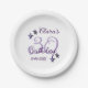 Prato De Papel Estrelas brilhantes roxas retro moderno aniversári