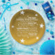 Estrelas com diferentes idiomas do Feliz Natal, Texto Branco com pequenas estrelas sobre fundo de ouro falso, Pratos Festivos de Festas de Natal
