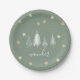 Adicione um toque de elegância à sua Festa de Natal com estas Pratos de Papelão Modernos das Estrelas de Natal, desenhadas em um azul macio com Árvores de Natal brancas e Estrelas Coloridas Douradas. O texto inclui: maravilha. Procure as Estrelas de Árvore de Natal Modernas correspondentes, Acessórios Dourados, Brancos e Verdes.