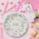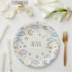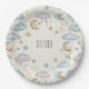 Estas placas de papel personalizadas apresentam uma ilustração esquemática de estrelas lúdicas, luas em crescente e nuvens fofinhas com aquarela pastel macio.