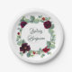 Eucalyptus verde e flores vermelhas e burgundy pratos de papel para casamentos