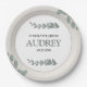 Elegant neutral tones eucalyptus baby shower paper plates, change the text to anything you want when you order.