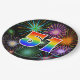 Esta design de placa de papel divertida, colorida e alegre apresenta um grande número "51" colorido com um padrão inspirado no gradiente do espectro arco-íris. Ele também apresenta um padrão inspirado em fogos de artifício celebratórios vibrantes e excitantes. O fundo é preto colorido. Chapas de papel divertidas como esta podem ser usadas na festa de aniversário de alguém de 511 ruas, numa comemoração de 51ruas, ou em algum outro primeiro evento de 50 anos. [~Z0000490]