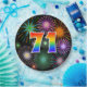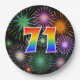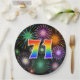 Este design de placa de papel alegre, colorido e alegre apresenta um grande número "71", tendo uma coloração de padrão inspirada no gradiente do arco-íris. Ele também apresenta um padrão inspirado em fogos de artifício celebratórios vibrantes e excitantes. Tem um fundo de cor preta. Chapas de papel divertidas como esta podem ser usadas em uma comemoração sendo realizada para observar o aniversário de 710 ruas de alguém, um aniversário de 71ruas, ou algum outro primeiro evento de 71 anos. [~Z0000490]