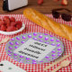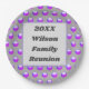 Estas placas de papel de reagrupamento familiar apresentam uma design bolinhas de grandes pontos roxos contra um fundo de cinza leve. Um grande quadrado de cinzas sólidas está centrado nestas placas para mostrar o ano e o nome da sua família. Personalize rápida e facilmente para criar um prato gentil para seu próximo janto de reunião, piquenique ou encontro.