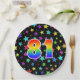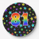 Este design de placa de papel alegre, divertida e colorida apresenta um grande número de "81", tendo uma coloração de padrão inspirada no gradiente do arco-íris. O fundo apresenta um padrão colorido de formas estelares. Chapas de papel divertidas como esta podem ser usadas na oitenta primeira comemoração de aniversário de alguém, ou na festa de aniversário de 81ruas de um casal, ou em qualquer outro oitenta primeiro evento. [~Z0000493]