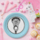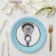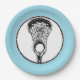 Placas de eventos para festas de Lacrosse ou de dia de jogo com arte de pau de lax em fundo azul.