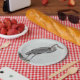Um retrato pastel macio de um Herão Azul Excelente adornou esses pratos de festa!
