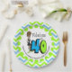 Fabuloso em 40 placas de papel do aniversário de 40 anos, uma grande adição à celebração do aniversário de 40 anos, características uma senhora de cabelo triguenha em um vestido preto e umas botas verdes, preto, azul, e texto do verde limão que lê fabuloso em 40, uma área que você pode personalizar com sua mensagem especial ou lhe agradecer notar, e uma borda decorativa verde da listra do anel e da viga de azul, de verde, e o branco!