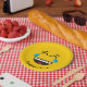 Um emoticon risonho que está rindo tanto que está chorando lágrimas de alegria. Texto personalizado.