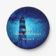 Prato De Papel Farol de aniversário marinho monograma azul-noturn