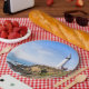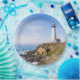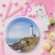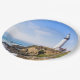 Prato De Papel Farol no oceano da casa branca azul-colina