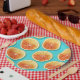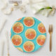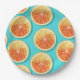 Um padrão de fatias de laranja frescas e suculentas em tons profundos de laranja tangerina e laranja vermelha, com textura aquosa que lhe dá aquele aspecto recém cortado. Eles são colocados sobre um fundo azul brilhante para um visual brilhante e de verão.