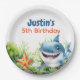 Prato De Papel Fazer Ondas Felizes Tubarão Sob O Aniversário Do M