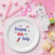 Na moda patriótico O design de jarro personalizado de férias de quarta de julho apresenta um design de texto de tipografia de roteiro "Feliz 4 de julho" em vermelho, azul e azul marinho com fogos de artifício celebrantes
