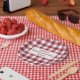 Prato De Papel Feliz Amizade Burgundy Xadrez Branca de Gingham