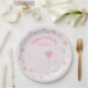 NewParkLane - Pratos de aniversário de papel para meninas, apresentando dois coelhos bonitinhos com um balão em forma de coração rosa quente, sentados e olhando para as estrelas, contra um fundo rosa e pincelado. Com o texto: "É um feliz aniversário! E um modelo de texto para nosso nome personalizado, para um design personalizado. Todos os estilos, cores e tamanhos de texto podem ser modificados para ajustado das suas necessidades. Veja esta coleção para itens correspondentes e divirta-se, misture e combine! Você tem desejos pessoais específicos de design? Sinta-se livre para me contactar.