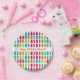 Placa de papel com uma mensagem de aniversário feliz e um padrão colorido e brilhante de ursos brilhantes. Os ursos nojentos encaram de lado ou de frente. Este é um design de doces coloridos, divertidos, com palavras personalizáveis.