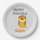 Prato De Papel Feliz aniversário, cinza personalizada de tigre fo