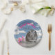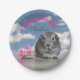Uma cinza-cobaia bonita com pequenas flores cor-de-rosa numa rocha senta-se sob um céu azul parcialmente nublado neste modelo desenhado prato de papel feliz de aniversário. Personalize os campos de texto, remova o texto ou clique em personalizar para selecionar um estilo de tipo, cor e tamanho desejados. Se você gosta, faça um PIN para encontrá-lo facilmente mais tarde.