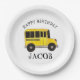 Prato De Papel Feliz Aniversário de Ensino de Ônibus Amarelo