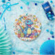 Uma Bela Placa Redonda De Papel Para Dinossauros Feliz De Aniversário Projetada Com Balões, Dinossauros Coloridos