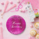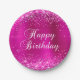 Prato De Papel Feliz Aniversário do Foil Rosa Quente