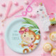 Prato De Papel Feliz Aniversário do Macaco Azul-Cinto Personaliza