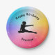 Gymnastics Happy Birthday Rainbow Stars Paper Plates com o nome do seu ginasta!