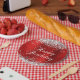 Garota cintilante prateado cintilante nos bordos superior e inferior sobre uma folha metálica vermelha esfregada em forma falsa. Você pode mudar a cor do texto Parabéns. Se você quiser adicionar o nome da aniversariante, a fonte da Amazónia é uma combinação próxima.