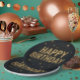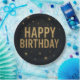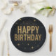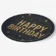Prato De Papel Feliz Aniversário Elegante Preto e Dourado Brilhan