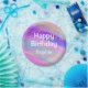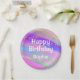 Placa de papel Feliz Aniversário, colorida e personalizada, com fundo de cor unicórnio arco-íris, brilhos dourados confetti e escrevendo branco ousado. Você pode adicionar facilmente o nome de sua escolha e alterar a cor e a fonte do nome usando a opção personalizar!