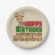 IMAGEM DA IMAGEM: Dasher Deer comemora o aniversário de Jesus Cristo. Bonita figura de desenho animado com o vermelho de Natal e o ecologicamente correto do cachecol festivo em "Feliz Aniversário Jesus". Esta imagem de desenho animado envia uma mensagem de alegria de Natal.