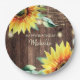 Prato De Papel Feliz Aniversário Madeira Rústica Girassóis Flores