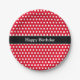 Prato De Papel Feliz Aniversário Mensagem de Bolinhas Vermelha e