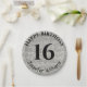 Este é um clássico design com fundo cintilante prateado para festas de aniversário.