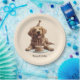 Ótima ilustração de desenho animado do Ouro Retriever cão vestindo um chapéu de aniversário. Perfeito para amantes de animais de estimação ou pais de cães.