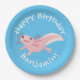 Prato De Papel Feliz aniversário personalizado do axolotl branco