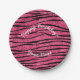 Prato De Papel Feliz aniversário, riscas de zebra rosa-claro